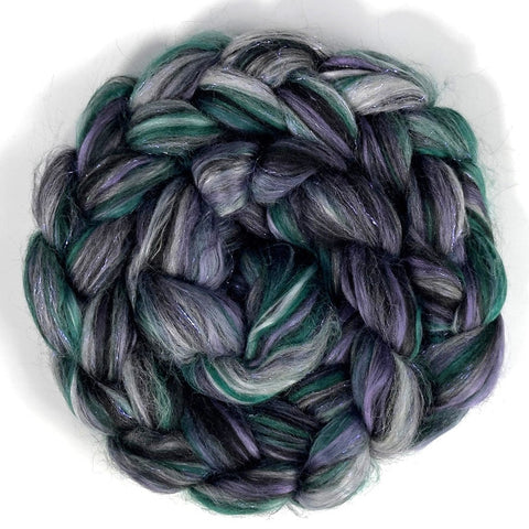 The featured fibre for December is Enchanted Forest: a fanciful blend of 60% Bamboo + 30% Corriedale + 10% Stellina. You will receive 225g of this magical blend.