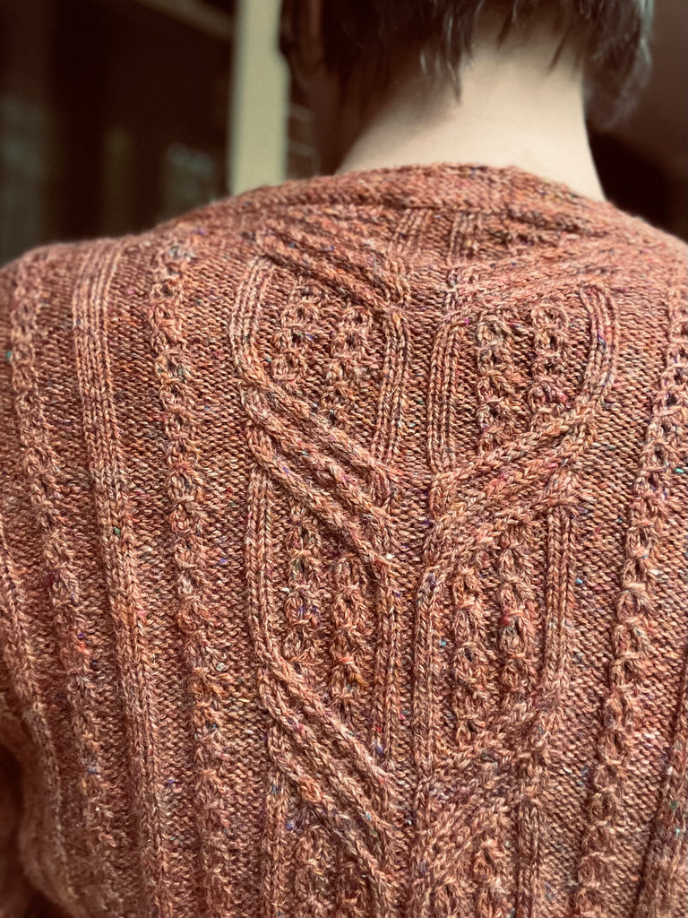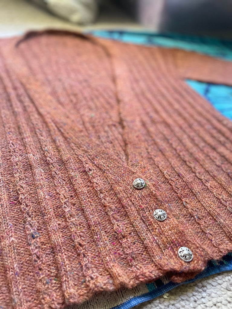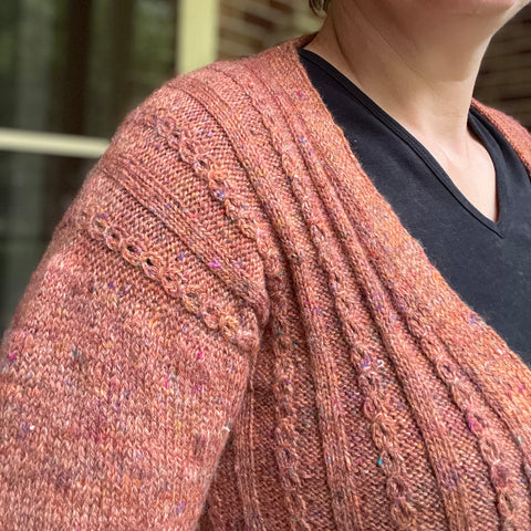 This is a woolen-spun yarn with beautiful texture and the occasional thicker or thinner sections, with pops of sari silk. As with all of the yarns that we spun in our mill, this is a non-superwash product.